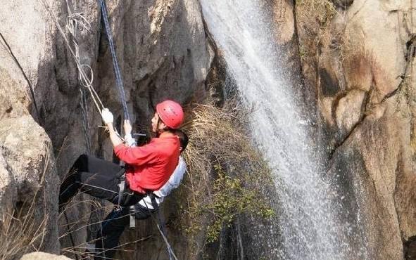在穿安全帶的時(shí)候,要先將自己的帶子穿過(guò)腰扣,就像我們穿褲子系皮帶的時(shí)候那樣,然后還要必須把帶子從穿回去的那一頭扣在腰帶上,也就是要反扣一下,這樣才能保證帶子不易送掉,在高空中受到任何的壓力和重物帶子也不容易滑開。如果是使用那種腿環(huán)式扣的安全帶,腿部的帶子也要反扣和打成結(jié)系起來(lái),這樣才能更好的確保攀巖的安全。